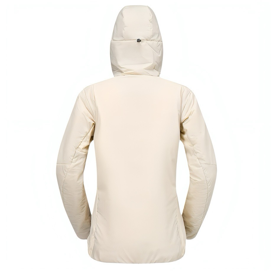 中綿にはPrimaLoft® Blackを採用。ボディーに60g/m2、肘下とフードには40g/m2といった異なる厚みを配置し 優れた保温性と軽量性を実現。 濡れても保温力を維持しながら収納性にも優れています。