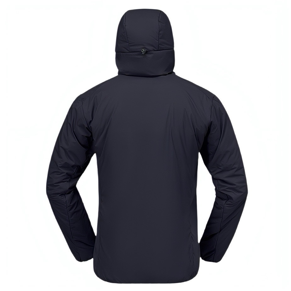 中綿にはPrimaLoft® Blackを採用。ボディーに60g/m2、肘下とフードには40g/m2といった異なる厚みを配置し 優れた保温性と軽量性を実現。